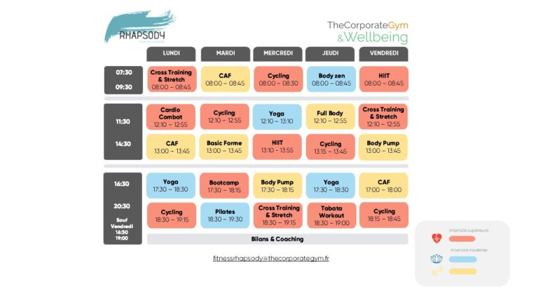 Nous recommandons de réserver nos cours collectifs en ligne. Vous pouvez réserver vos cours jusqu’à 7 jours à l’avance. Une confirmation vous sera adressée par courriel pour toute réservation à un cours.